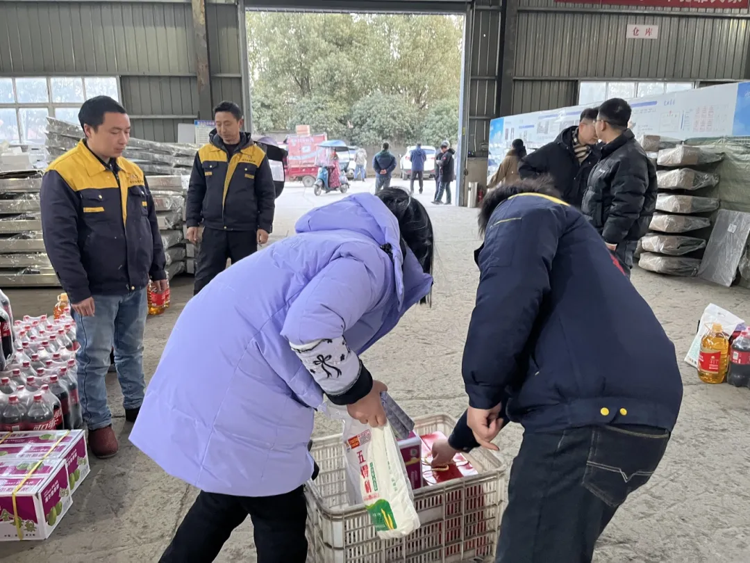 年貨發放現場洋溢著一片溫馨和諧的氛圍,你來我往、相互協作,搬運、核對、井然有序,沉甸甸的禮品提在手里,暖在心里。