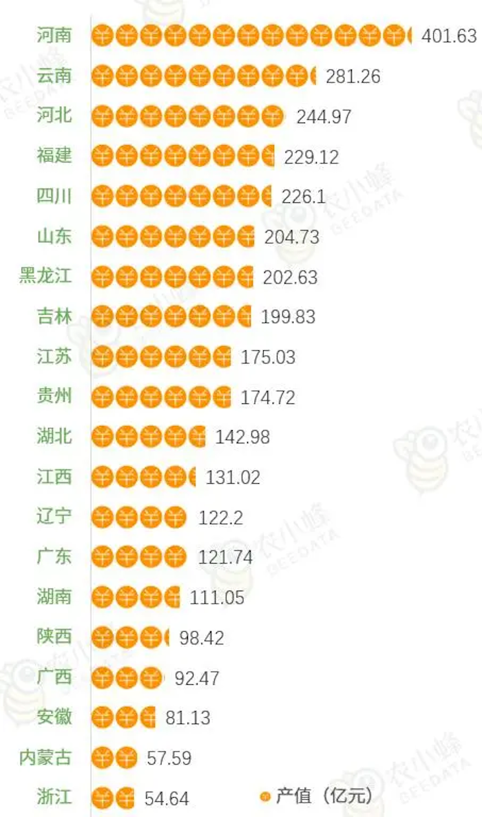 2.2.各省產業規模對比:河南產量與產值均位居全國首位