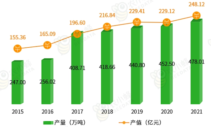 本文為報告正文的簡要內容,報告正文基于農小蜂在運營過程中積累的食用菌產量、產區分布等數據,從食用菌產量、產值、主要產區、細分產品、市場主體、市場需求、對外貿易以及特色產區及品牌等幾個方面分析了中國食用菌產業發展情況,為從事食用菌全產業鏈科研、育種、加工、倉儲、包裝、運輸、銷售等活動的主體及社會服務機構提供參考。
